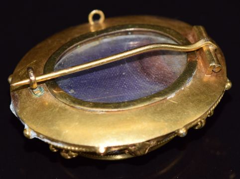 Victorian yellow metal brooch set with a large oval cut citrine, verso a glass compartment, 4 x 3.5cm, 23.4g