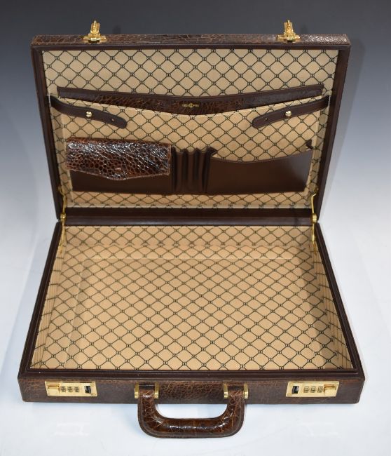 Two vintage snakeskin attaché cases with fitted interiors, W44 x D33 x H8.5cm