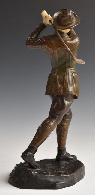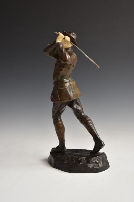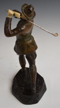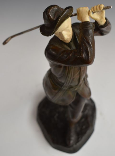 Early 20thC bronze and ivory figure of an Austrian or similar gentleman golfer in the manner of Ferdinand Preiss, H31cm