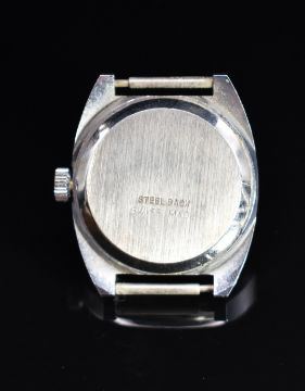 Smiths Astral gentleman's digital jump hour wristwatch with white Arabic numerals, blue dial, stainless steel case and mechanical movement, case diameter 30mm.
