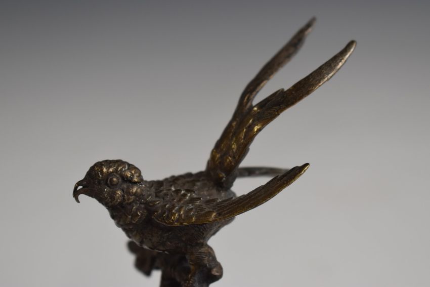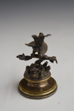Ferdinand Pautrot (1832-1874) silver plated study of a bird on foliage, signed to edge, H12cm