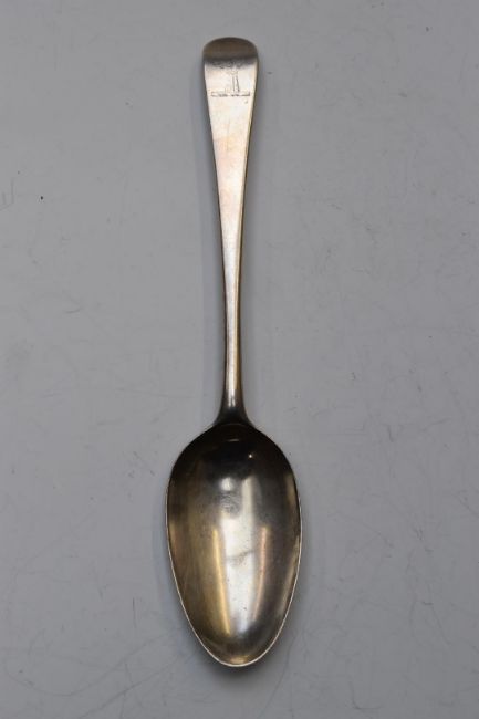 George III bottom hallmarked silver Old English pattern table spoon, London 1764, maker's mark GH or CH, length 21cm, weight 58g