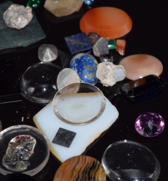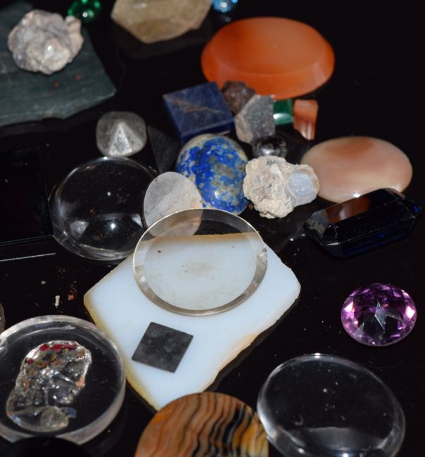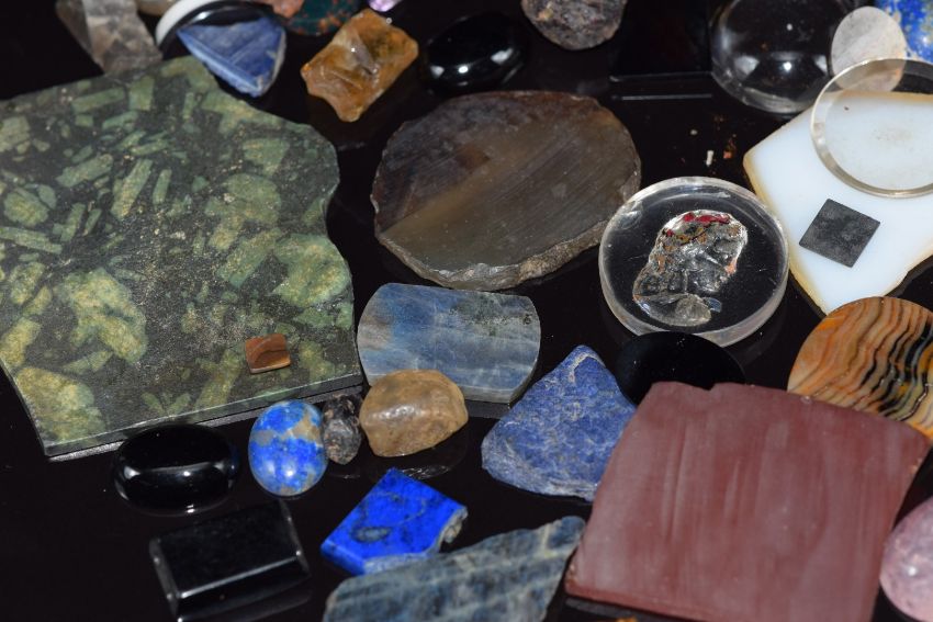A collection of agate sections, cabochons, etc