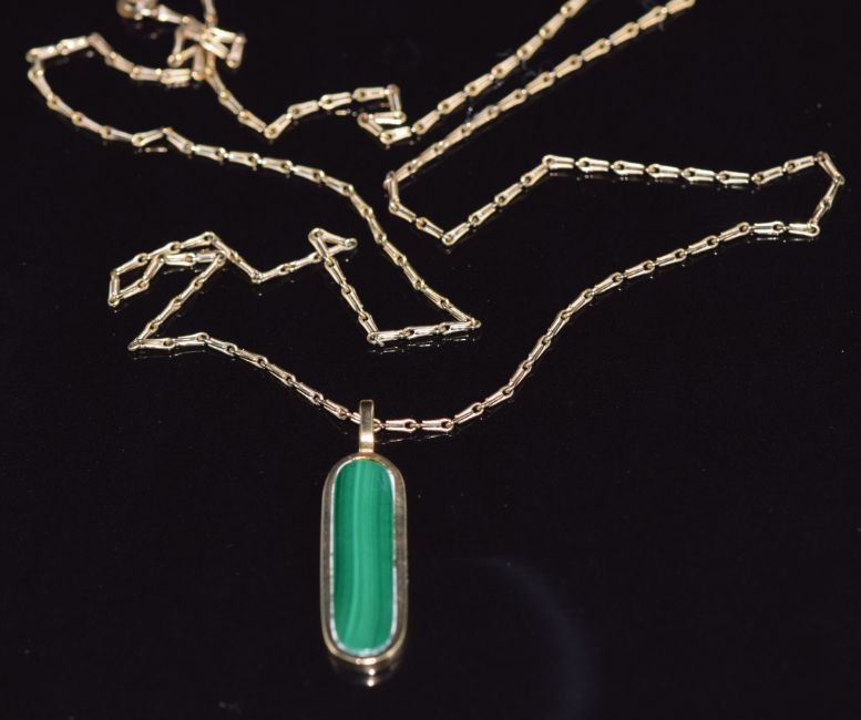 A 9ct gold necklace set with malachite, 5.8, 60cm long