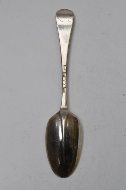 George II bottom hallmarked silver Hanoverian rat tail pattern table spoon, London 1756, maker Thomas Devonshire & William Watkins, length 20cm, weight 58g