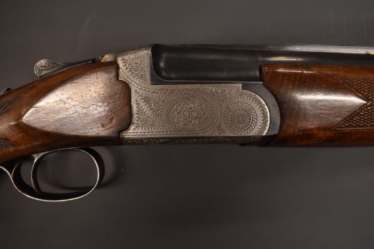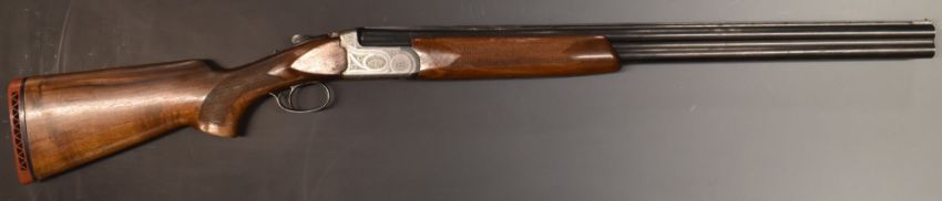 Sportarmi 12 bore side by side ejector shotgun with two sets of barrels, engraved locks, underside, top plate and thumb lever, chequered semi-pistol grip and forend, vented top rib, single trigger, 27.5 inch barrels choked ¾ and full and spare 26 inch barrels, overall length 112.5cm, length of pull 34cm, serial number 24239.  PLEASE NOTE THAT A VALID RELEVANT FIREARMS/SHOTGUN CERTIFICATE IS REQUIRED TO HANDLE/PURCHASE THIS ITEM.