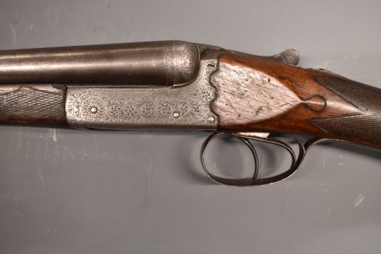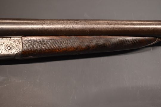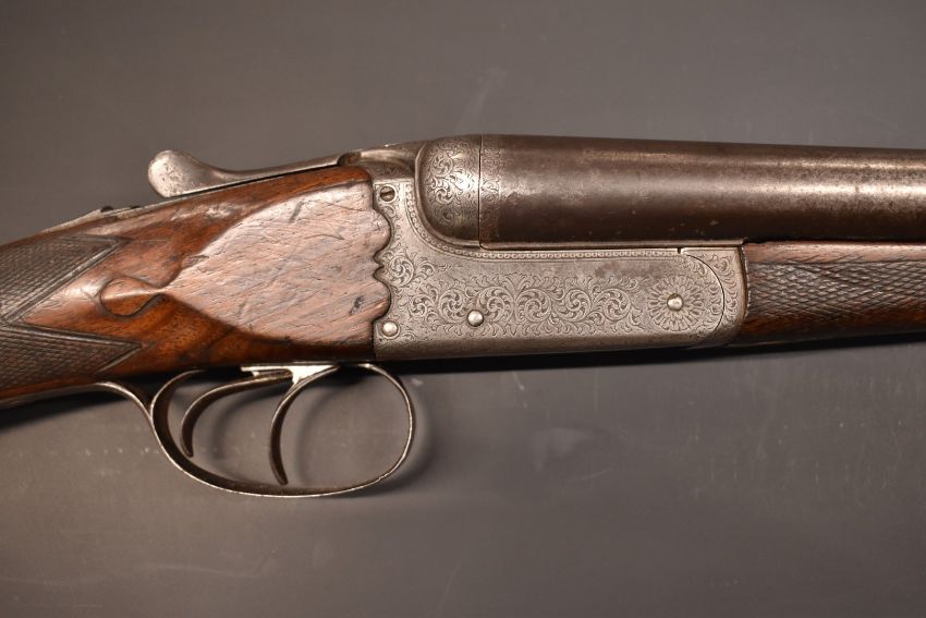 H Dean of Durham 16 bore side by side ejector shotgun with engraved lock, trigger guard, underside, thumb lever, fences and top plate, chequered grip and forend, vacant cartouche to the underside of the stock, carved teardrop to the wrist, double trigger and named 29 inch barrels, overall length 115cm, length of pull 36.5cm, NVSN. PLEASE NOTE THIS GUN IS BEING SOLD AS STOCK AND ACTION ONLY AND THAT A VALID RELEVANT FIREARMS/SHOTGUN CERTIFICATE IS REQUIRED TO HANDLE/PURCHASE THIS ITEM.