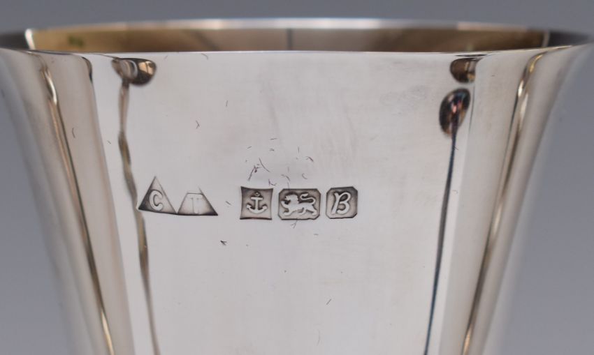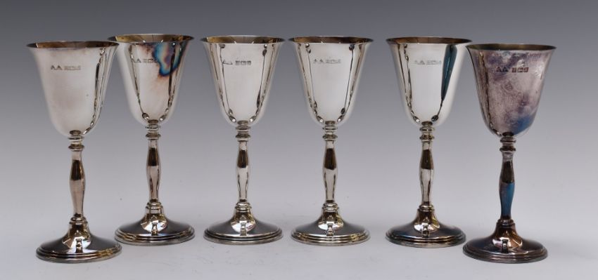 Set of six Elizabeth II hallmarked silver goblets, Birmingham 1975, maker Frank Hawker Ltd, height 15cm, weight 775g, all in original boxes