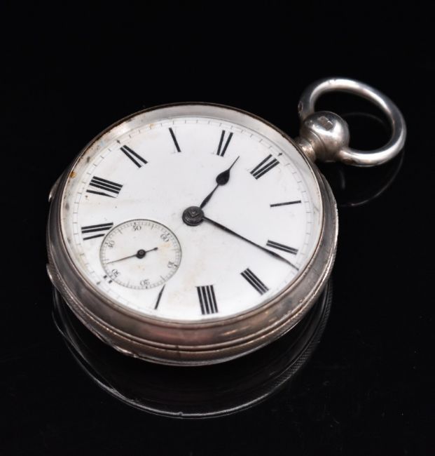 Two hallmarked silver pocket watches, one by G Bryson of London, both with inset subsidiary seconds dials, blued hands and black Roman numerals, largest case diameter 51mm.