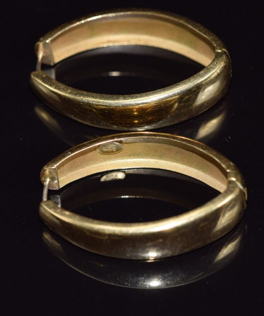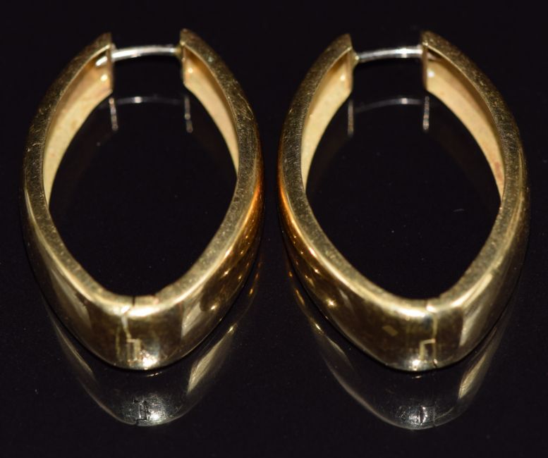 A pair of 18ct gold hoop earrings, 15.3g, 5 x 2.5cm