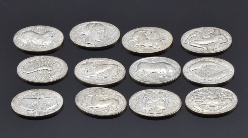 Set of twelve Zodiac sign white metal cuff link inserts, from the Ian Rank-Broadley collection, 39g