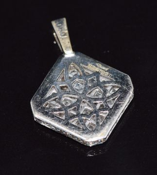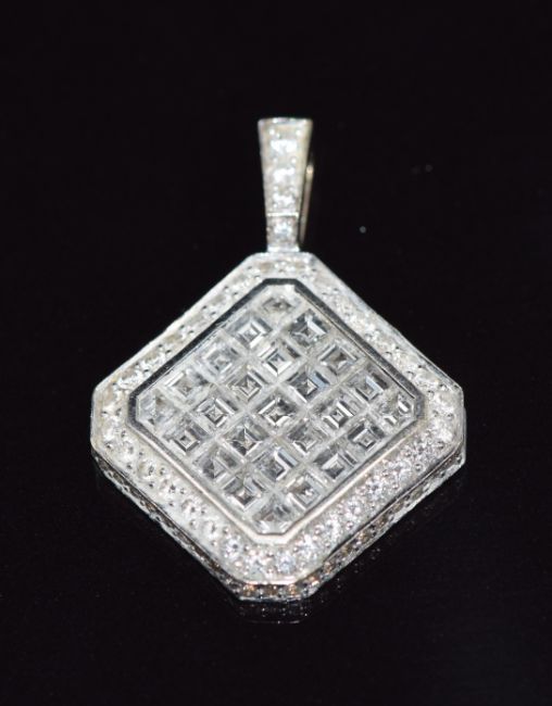 A 18ct white gold pendant set with square and round cut diamonds by Davril London, 1.6cm square, 5.8g