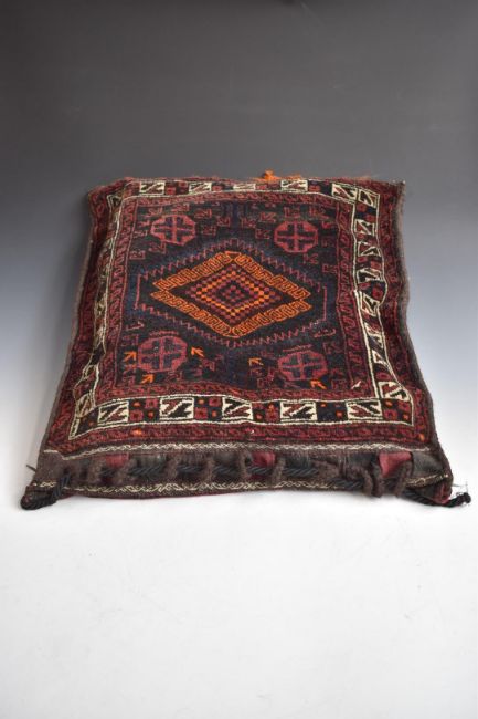 A pair of North African camel bags / cushions, 70 x 65cm