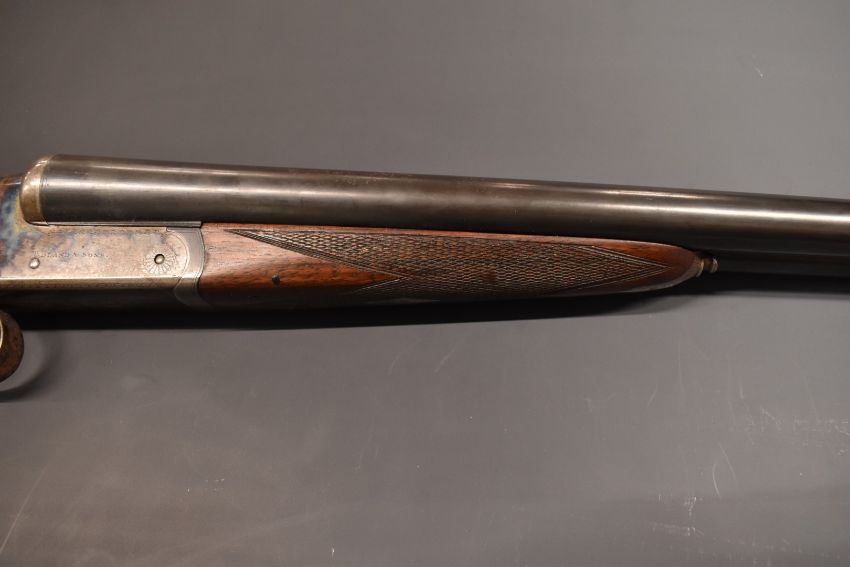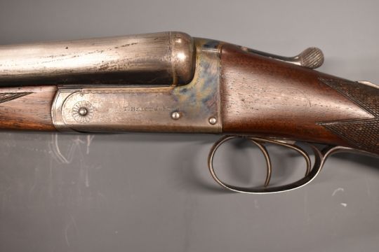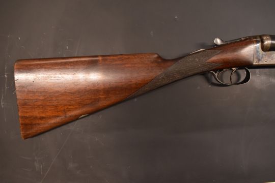 Thomas Bland 12 bore side by side shotgun with border engraved lock, trigger guard, underside, top plate and thumb lever, chequered semi-pistol grip and forend, vacant cartouche to the underside of the stock, double trigger and 28 inch barrels choked ¾ and improved cylinder, overall length 113cm, length of pull 36.5cm, serial number 18260.  PLEASE NOTE THAT A VALID RELEVANT FIREARMS/SHOTGUN CERTIFICATE IS REQUIRED TO HANDLE/PURCHASE THIS ITEM.