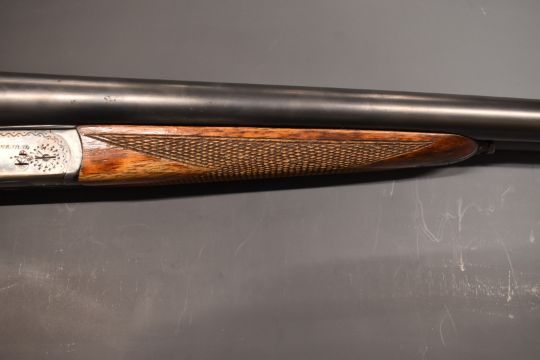 AYA No.3 12 bore side by side shotgun with named locks, border engraved locks, trigger guard, underside fence top plate and thumb lever, chequered grip and forend, double trigger and named 28 inch barrels choked ¼ and ¾, overall length 114.5cm, length of pull 37.5cm, serial number 521163.  PLEASE NOTE THAT A VALID RELEVANT FIREARMS/SHOTGUN CERTIFICATE IS REQUIRED TO HANDLE/PURCHASE THIS ITEM.