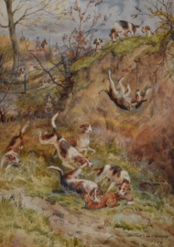 Arthur Alfred Davis (b 1859 fl 1877-1905) three watercolour hunting scenes, all signed and dated 1906 to lower edge, 37 x 26cm, framed and mounted