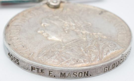 British Army Queen's South Africa Medal 1899 named to 4055 Private E Mason Gloucestershire Regiment