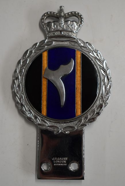 King's African Rifles 3rd Battalion metal and enamel car badge by J R Gaunt, London, H14cm