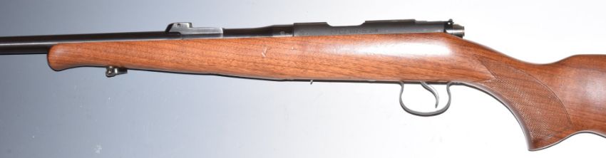 CZ .22 bolt-action rifle with chequered semi-pistol grip, sight mounts, scope rail, sling suspension loops and 25 inch barrel, overall length 108.5cm, serial number 746815. PLEASE NOTE THAT A VALID RELEVANT FIREARMS/SHOTGUN CERTIFICATE IS REQUIRED TO HANDLE/PURCHASE THIS ITEM.