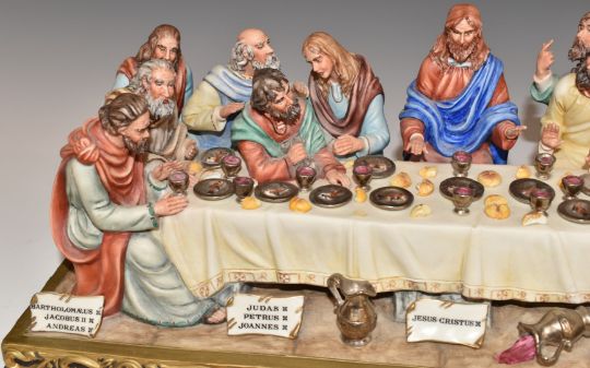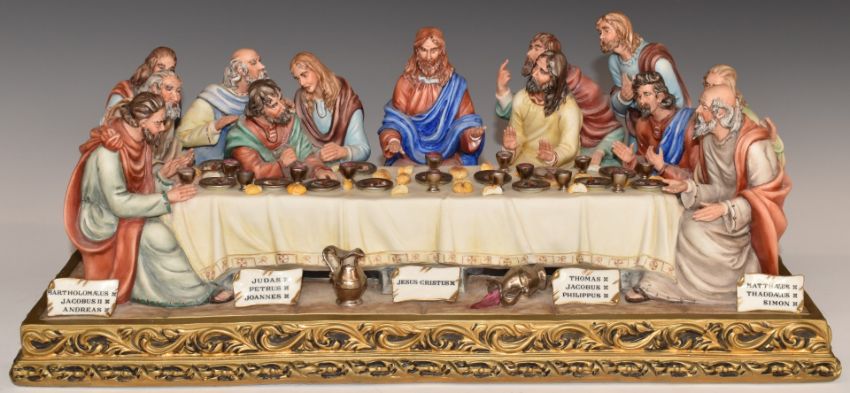 Capodimonte limited edition figural group The Last Supper, with certificate, H17 x L43cm