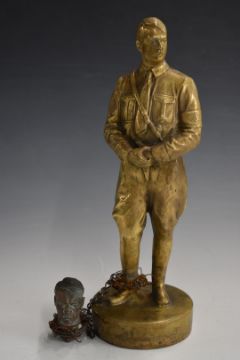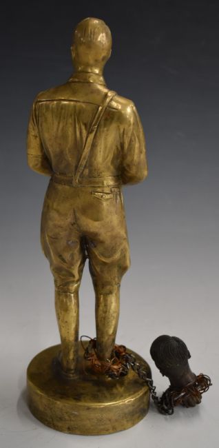 Brass figure of Adolf Hitler in uniform, with a symbolic decapitated head of himself attached to his leg, H28cm including plinth