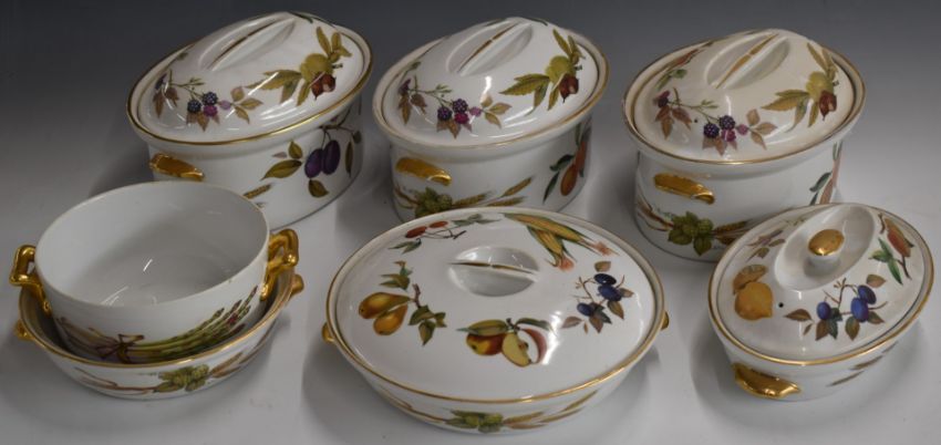 Five Royal Worcester tureens decorated in the Evesham pattern and two bowls