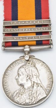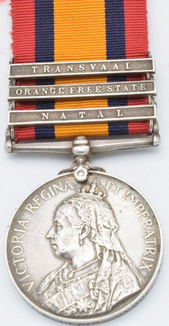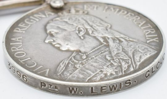 British Army Queen's South Africa Medal 1899 with clasps for Natal, Orange Free State and Transvaal, named to 3996 Private W Lewis Gloucestershire Regiment