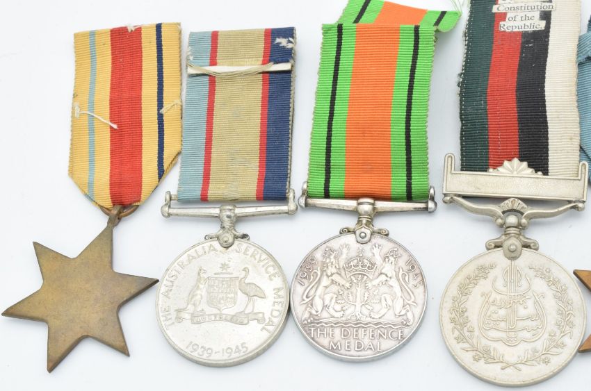 Eight medals comprising Australian Service Medal named to N X 7360 W J Issacs, Pakistan Constitution Medal, WW2 War Medal, two Defence Medals, 1939/1945 Star, Africa Star with clasp for North Africa 1942-43 and a French Croix de Guerre