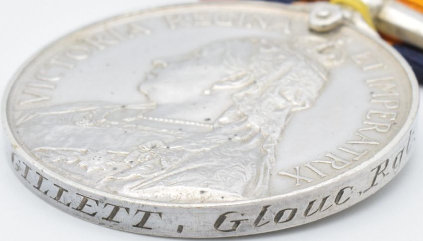 British Army Queen's South Africa Medal 1899 with clasps for Relief of Kimberley, Paardeberg and Drifontein, named to 3942 Private J Gillett Gloucestershire Regiment