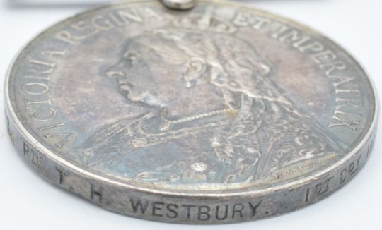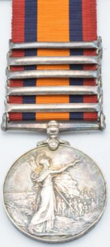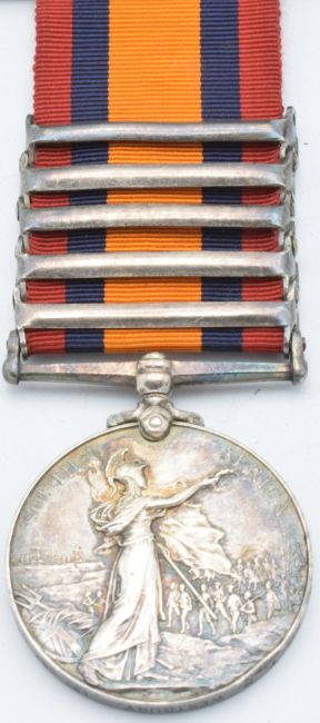 British Army Queen's South Africa Medal 1899 with clasps for Cape Colony, Orange Free State, Transvaal and South Africa 1901 and 1902, named to 27639 Pte T H Westbury, 1st Company Imperial Yeomanry together with two Wiltshire Yeomanry hat badges