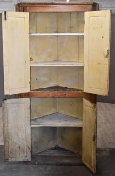 19thC panelled pine four door corner cupboard with shelved interior, W102 x H210cm