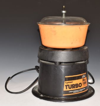 A collection of re-loading equipment and accessories including RCBS JR3 Press, Uniflow Powder Measure, Powder Trickler and Model 5.0.5 Reloading Scale, Lee press and Auto-Prime, Lyman Turbo Pro 1200 Tumbler, Kinetic Bullet Puller, callipers, handloading book etc, some in original boxes.