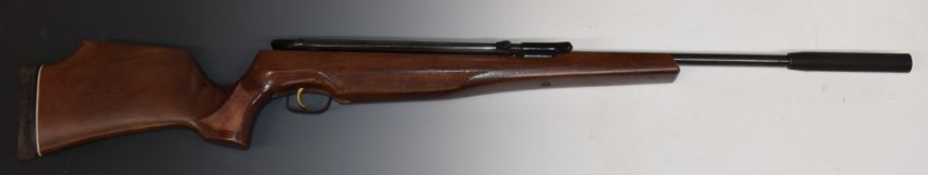 Air Arms .22 side lever air rifle with chequered semi-pistol grip and forend, raised cheek piece, adjustable trigger and sound moderator, serial number NVSN. .
