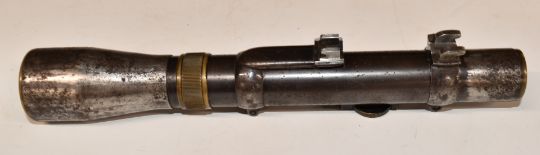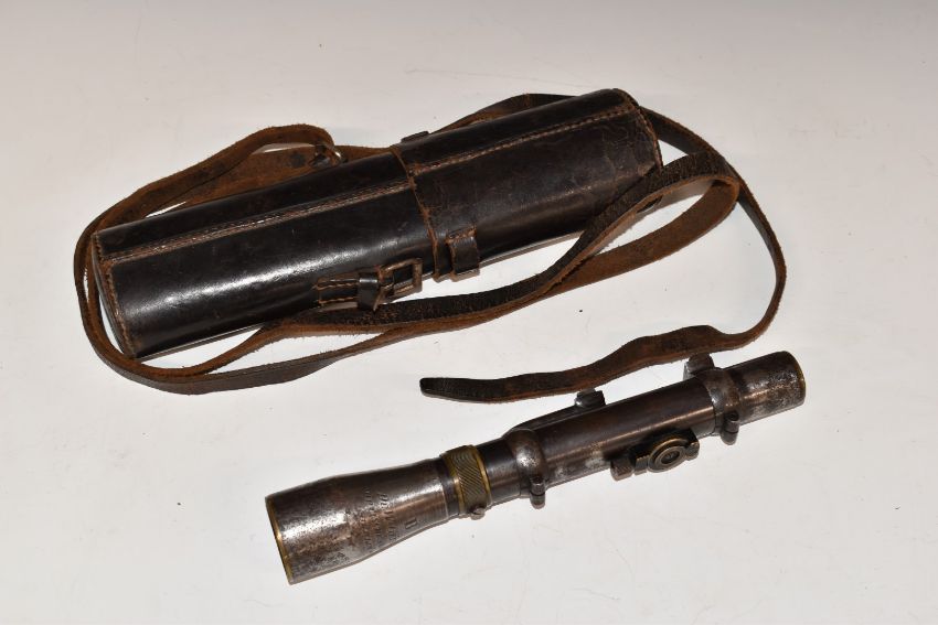 Dr W Gerard rifle scope with scope mounts engraved 'B Dr W Gerard Ortische Anstalt Berlin W50', in original leather case.