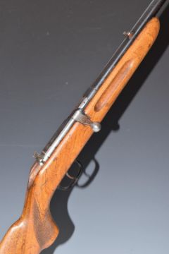 Barnhard Paatz .22 bolt-action rifle with chequered semi-pistol grip, raised cheek-piece, adjustable sights and 23.5 inch barrel, overall length 106.5cm, serial number 17696. PLEASE NOTE THAT A VALID RELEVANT FIREARMS/SHOTGUN CERTIFICATE IS REQUIRED TO HANDLE/PURCHASE THIS ITEM.