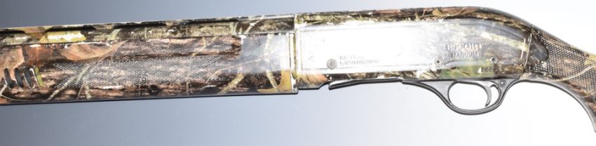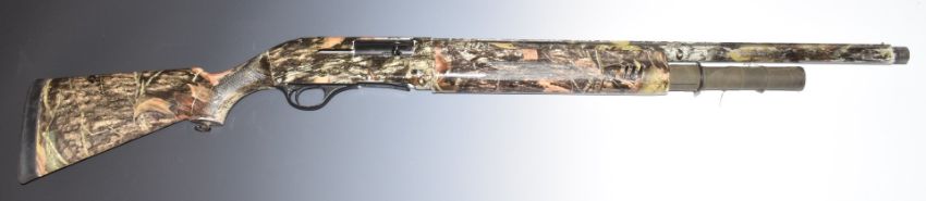 Hatsan Escort Magnum 12 bore 8-shot semi-automatic shotgun with chequered semi-pistol grip and forend, vented rib sling mounts, single trigger, camouflage finish and 24 inch multi choked barrel, overall length 113cm, length of pull 35.5cm, serial number 66061. PLEASE NOTE THAT A VALID RELEVANT FIREARMS/SHOTGUN CERTIFICATE IS REQUIRED TO HANDLE/PURCHASE THIS ITEM.