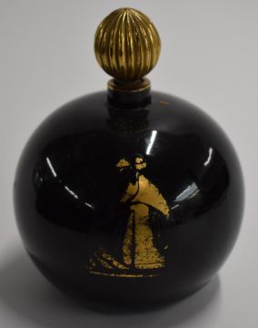 Seven glass scent or perfume bottles including one Daum style, two with white metal mounts, a flash overlaid example, two Lalique style and one engraved Jeanne Lanvin, largest 22cm tall.