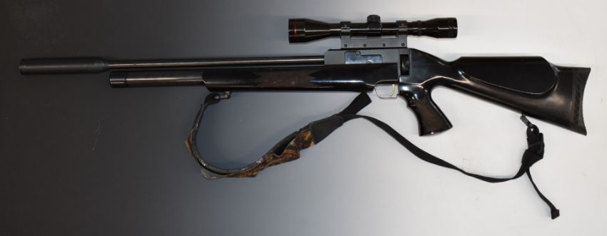 Brocock Enigma .177 PCP air rifle with chequered pistol grip and forend, raised cheek piece to the stock, sling, sound moderator and 4x40 scope, NVSN.