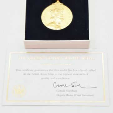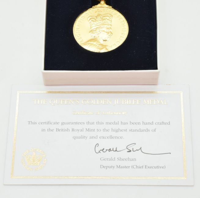 Queen Elizabeth II Golden Jubilee medal 1952-2002, in original box with signed certificate by the artist, Ian Rank-Broadley. From the Ian Rank-Broadley collection