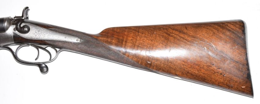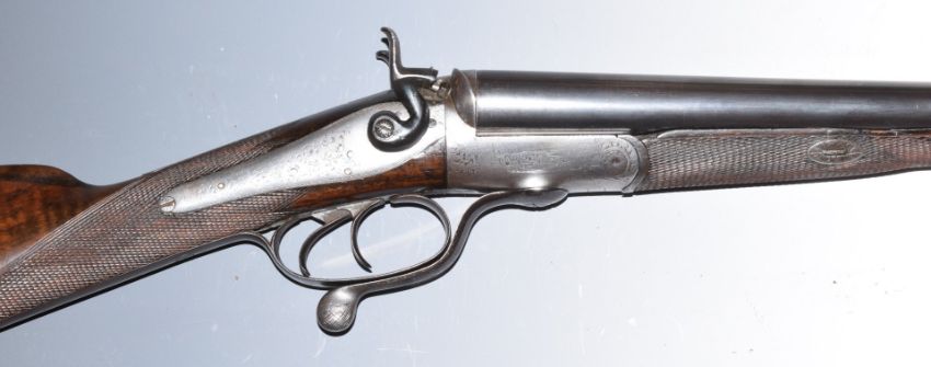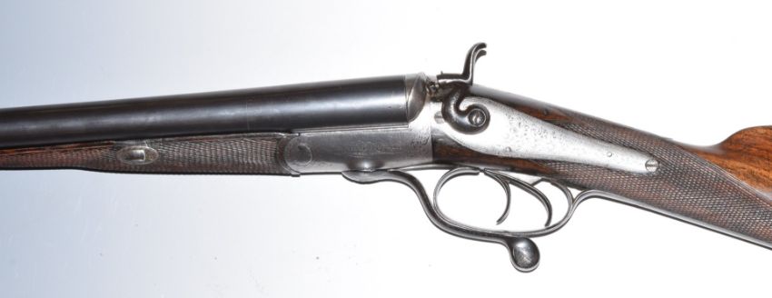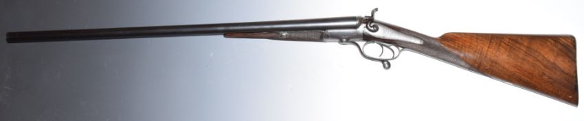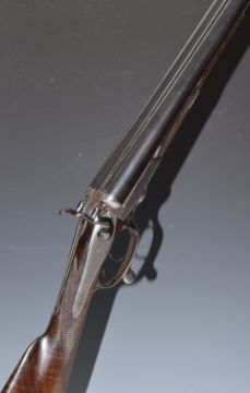 Churchill 12 bore side by side hammer action shotgun with named and engraved locks, engraved underside, rotary underlever, top plate, hammers and fences, chequered grip and forend, vacant cartouche to the underside of the stock, double trigger and 28 inch barrels, overall length 113cm, length of pull 36.5cm, NVSN. PLEASE NOTE THAT A VALID RELEVANT FIREARMS/SHOTGUN CERTIFICATE IS REQUIRED TO HANDLE/PURCHASE THIS ITEM.