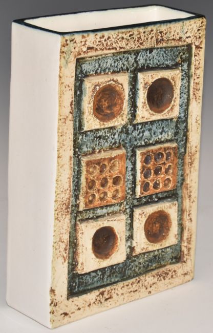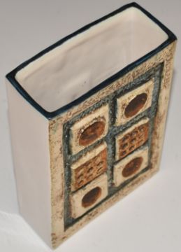 Troika vase of rectangular form with 'Troika England' and PB monogram to base, H17.5cm