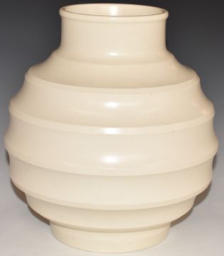 Keith Murray for Wedgwood retro moonstone 'football' vase with impressed signature and factory marks to base, H24cm