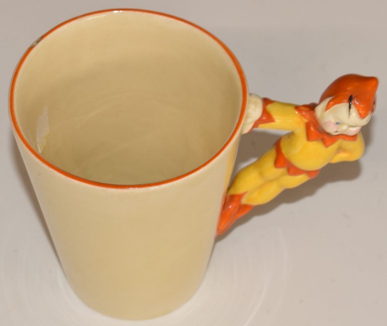 Clarice Cliff for Wilkinson Pottery mug with figural pixie handle, H10cm