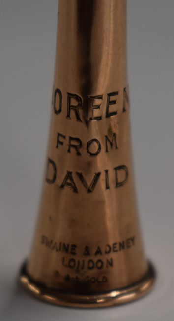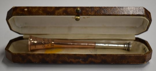 Swaine & Adeney bi-coloured 9ct gold propelling pencil in the form of a hunting horn