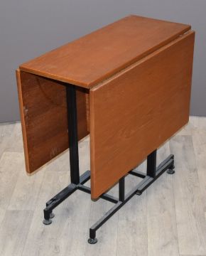 Retro drop leaf table with teak top and metal frame L122 x W78 x H73