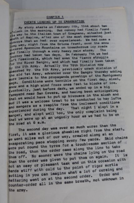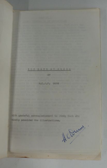 WW2 book 100 Days at Anzio by H C A P Dunn, Royal Artillery, believed to be an unpublished original typed example