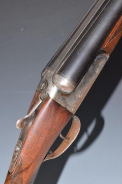 AYA 12 bore side by side shotgun with chequered grip and forend, double trigger and named 28 inch barrels choked improved cylinder and ½, overall length 114.5cm, length of pull 37cm, serial number 537529. PLEASE NOTE THAT A VALID RELEVANT FIREARMS/SHOTGUN CERTIFICATE IS REQUIRED TO HANDLE/PURCHASE THIS ITEM.