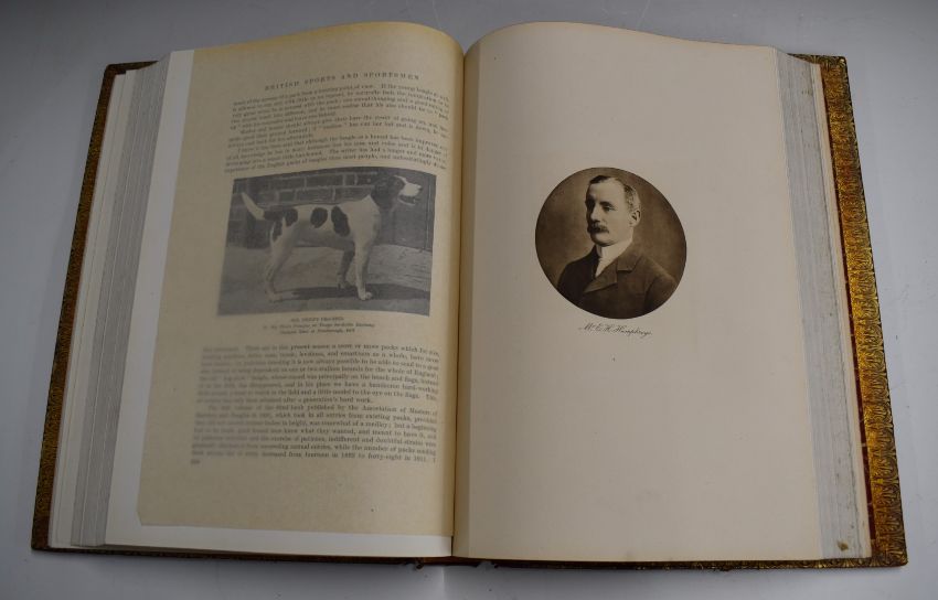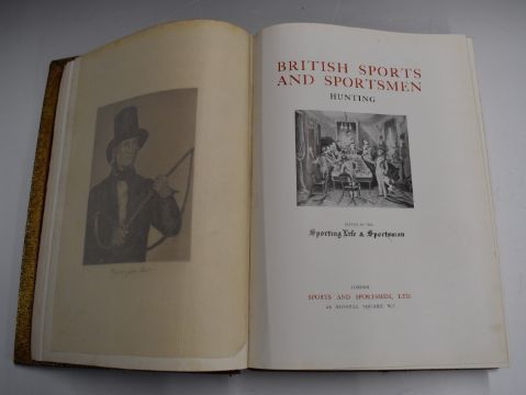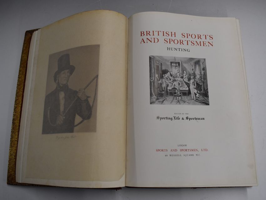 British Sports And Sportsmen “Hunting” edited by the Sporting Life & Sportsman, published (c1930) limited to 1000 copies with 12 full-page photogravures and many photographic reproductions in text, finely bound in full leather with raised bands and gilt titles