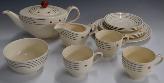 Burleighware Art Deco 'Tea for Three' tea set decorated in the Viscount pattern