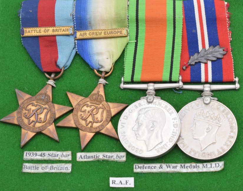 Seven WW2 medals comprising 1939/1945 star with copy Battle of Britain clasp, two Atlantic Stars one with clasp for Air Crew Europe, two Defence Medals and two War Medals, one with mentioned in despatches emblem